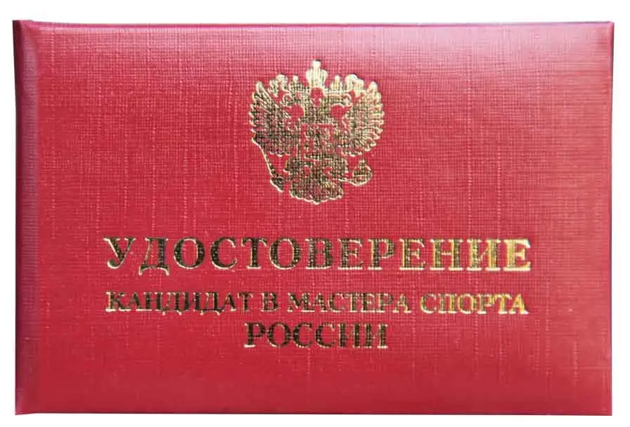 Удостоверение бумвинил 95*65 мм (пухлое) с тиснением "кандидат в мастера спорта" бордовое, вклейка бумага