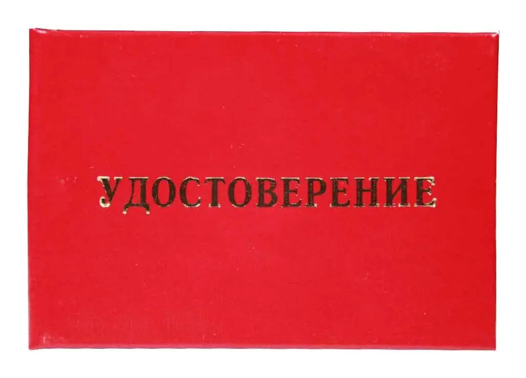 Удостоверение жесткое 95*65 мм бумвинил красный, индив.вклейка, тиснение золото