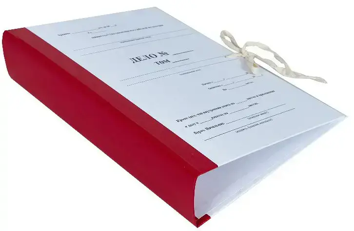 Архивная папка А4 с гребешками, офсет (1+0)/бумвинил красный, корешок полумягкий 70 мм, 2 завязки