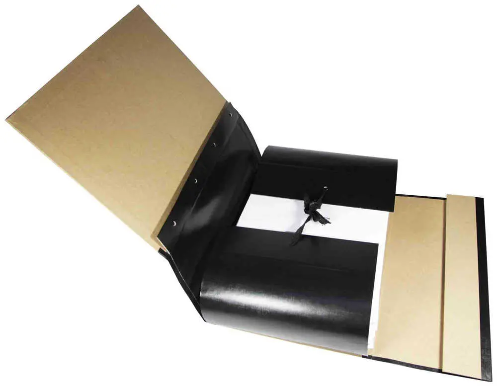 Архивная папка А4, 150 мм, крафт/бумвинил, с цельнокроенным гребешком, мягкие клапана, 4 завязки, черная