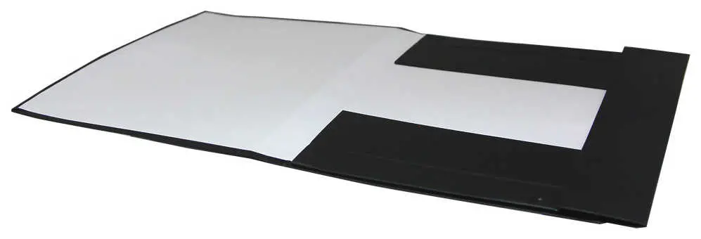 Архивная папка жесткая. Выполнена из плотного переплетного картона, обклеенного бумвинилом черного цвета, с корешками 30 мм и тремя клапанами. Сторонки папки выклеены белой бумагой. Папка вмещает до 300 листов формата А4. Папка завязывается на 2 шнурка.