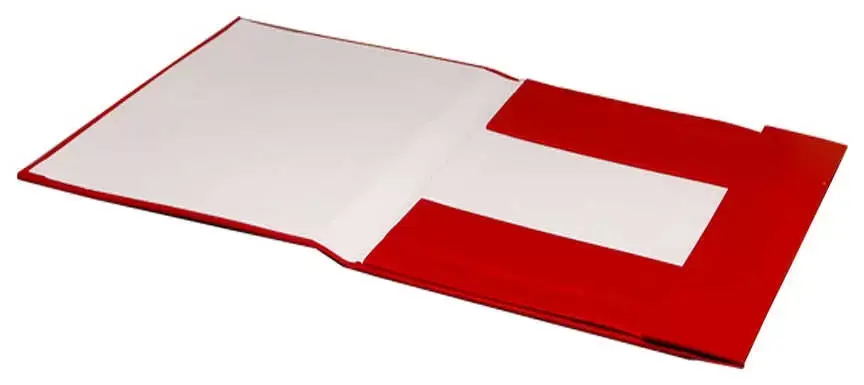 Архивная папка жесткая. Выполнена из плотного переплетного картона, обклеенного бумвинилом красного цвета, с корешками 30 мм и тремя клапанами. Сторонки папки выклеены белой бумагой. Папка вмещает до 300 листов формата А4. Папка завязывается на 2 шнурка.