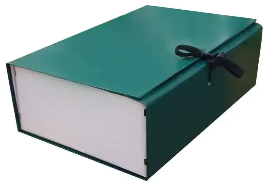 Архивный короб формат А4. Изготовлен из плотного переплетного картона, с внешней стороны покрыт бумвинилом зеленого цвета. С внутренней стороны белая бумага, имеются стойки-упоры разборные из гофрокартона. В закрытом виде фиксируется с помощью двух завязок. Короб вмещает до 1000 листов формата А4. Размер изделия в собранном виде - 225х105х320 мм. Упаковка в гофрокороб по 25 шт. Вес упаковки 8 кг. Размер упаковки 475х345х205 мм. Поставляются в разобранном виде.