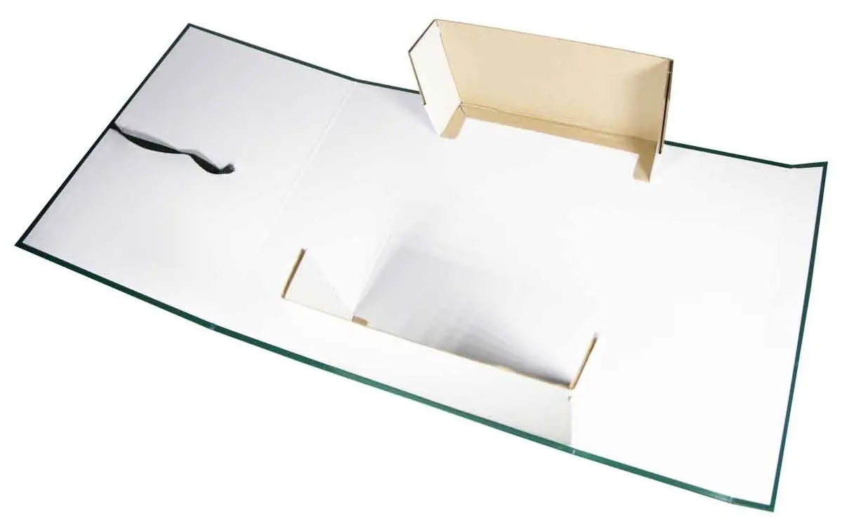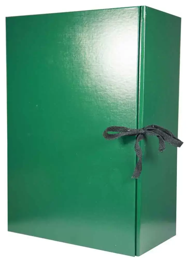 Архивный короб формат А4. Изготовлен из плотного переплетного картона, с внешней стороны покрыт бумвинилом зеленого цвета. С внутренней стороны белая бумага, имеются стойки-упоры разборные из гофрокартона. В закрытом виде фиксируется с помощью двух завязок. Короб вмещает до 1200 листов формата А4. Размер изделия в собранном виде - 225х125х320 мм. Упаковка в гофрокороб по 25 шт. Вес упаковки 8,4 кг. Размер упаковки 510х345х205 мм. Поставляются в разобранном виде.