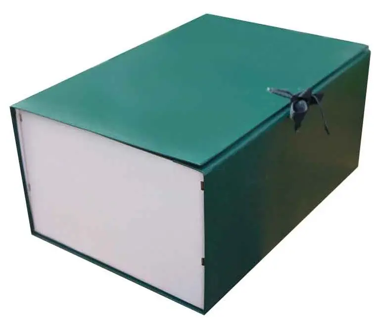 Архивный короб формат А4. Изготовлен из плотного переплетного картона, с внешней стороны покрыт бумвинилом зеленого цвета. С внутренней стороны белая бумага, имеются стойки-упоры разборные из гофрокартона. В закрытом виде фиксируется с помощью двух завязок. Короб вмещает до 1500 листов формата А4. Размер изделия в собранном виде - 225х155х320 мм. Упаковка в гофрокороб по 25 шт. Вес упаковки 9,7 кг. Размер упаковки 580х345х205 мм. Поставляются в разобранном виде.