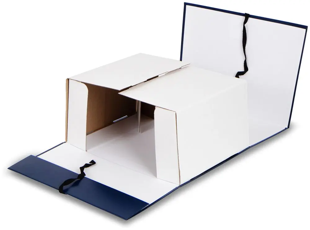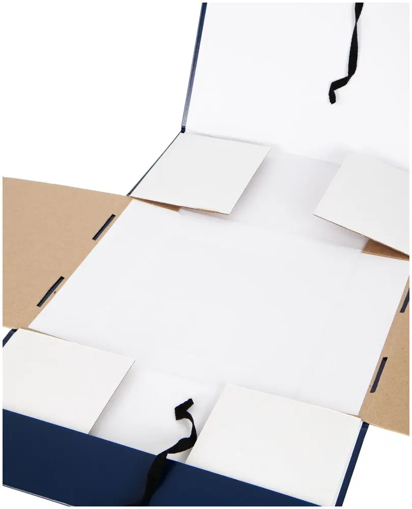 Архивный короб формата А4. Изготовлен из плотного переплетного картона, с внешней стороны