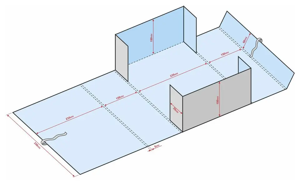 изделия в собранном виде— 245×155×330 мм. Упаковка в гофрокороб по 25 шт. Вес упаковки 11,7