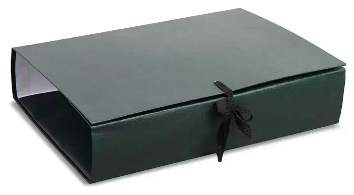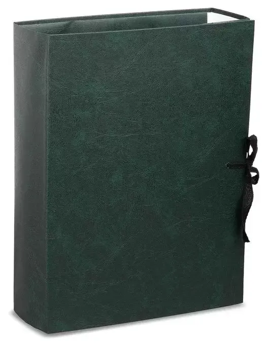 Архивный короб формата А4. Изготовлен из плотного переплетного картона, с внешней стороны покрыт бумвинилом темно-зеленого цвета. Внутри короб обклеен офсетной бумагой, также имеются мягкие клапана. В закрытом виде фиксируется с помощью двух хлопчатобумажных завязок. Короб вмещает до 700 листов стандартной плотности, ширина корешка — 70 мм. Позволяет надежно хранить документы как в вертикальном, так и в горизонтальном положении. Размер изделия в собранном виде— 245×75×330 мм. Размер изделия в сложенном виде — 230×70×320 мм. Упаковка в гофрокороб по 25 шт. Вес упаковки 8,4 кг. Размер упаковки 435×345×205 мм. Поставляется в разобранном виде