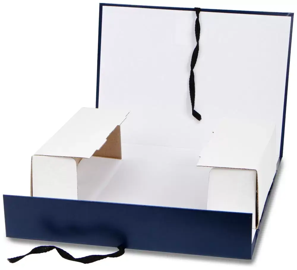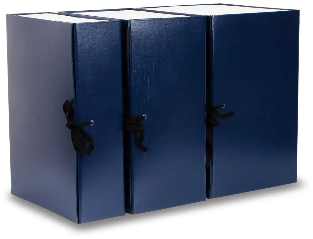 Архивный короб формата А4. Изготовлен из плотного переплетного картона, с внешней стороны