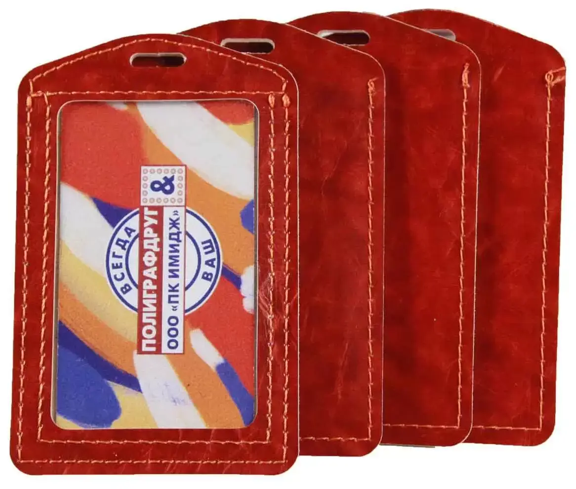 Бейджи из искусственной кожи, прошитые по краям, с окошечком из толстой прозрачной пленки ПВХ. Сделаны под размер визитной карточки или размер банковской карточки. Бейджи имеют ушко для крепления ретрактора или другого держателя. Держатель можно заказать отдельно (артикул ДР-В) Цвет светло-коричневый