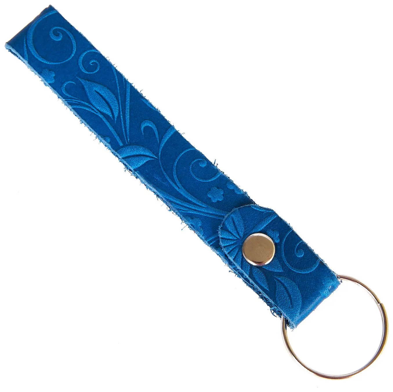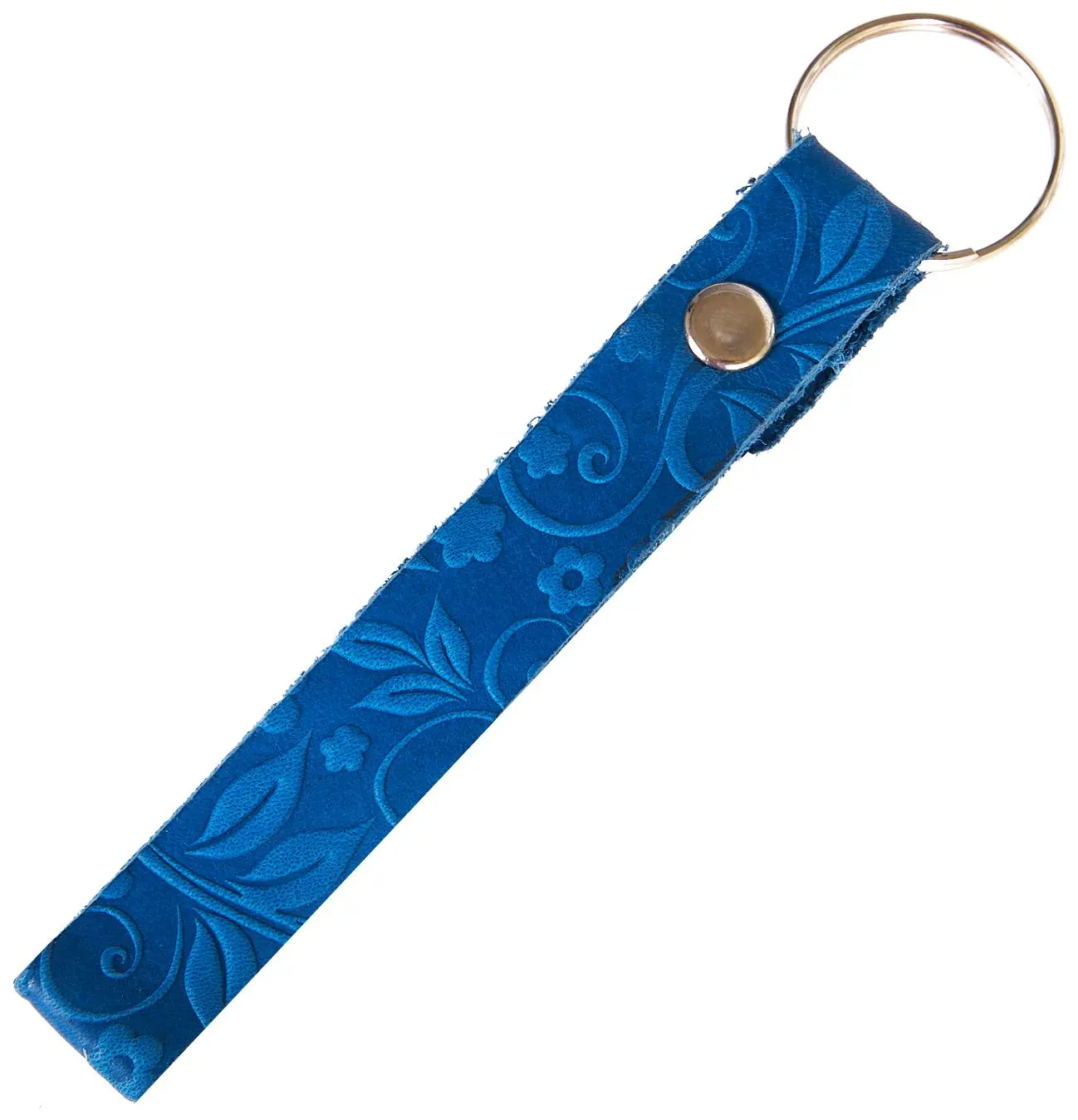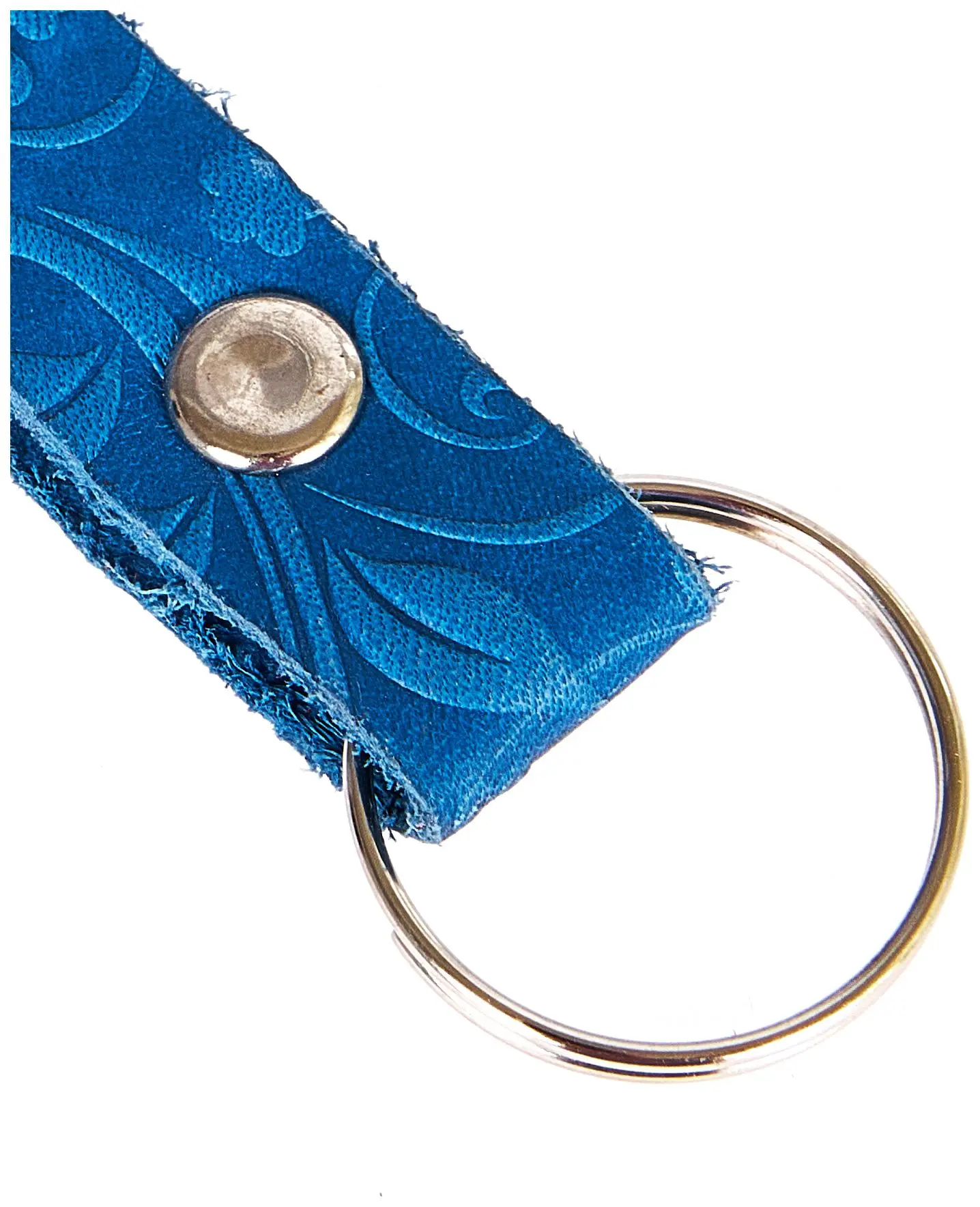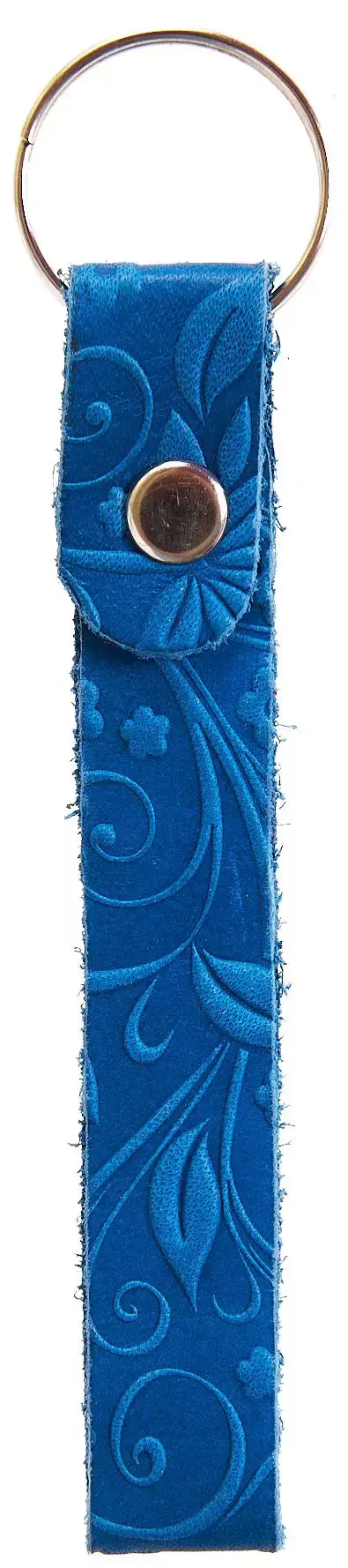 Брелок для ключей из натуральной кожи, голубой, тиснение по коже конгрев "Флаверс"