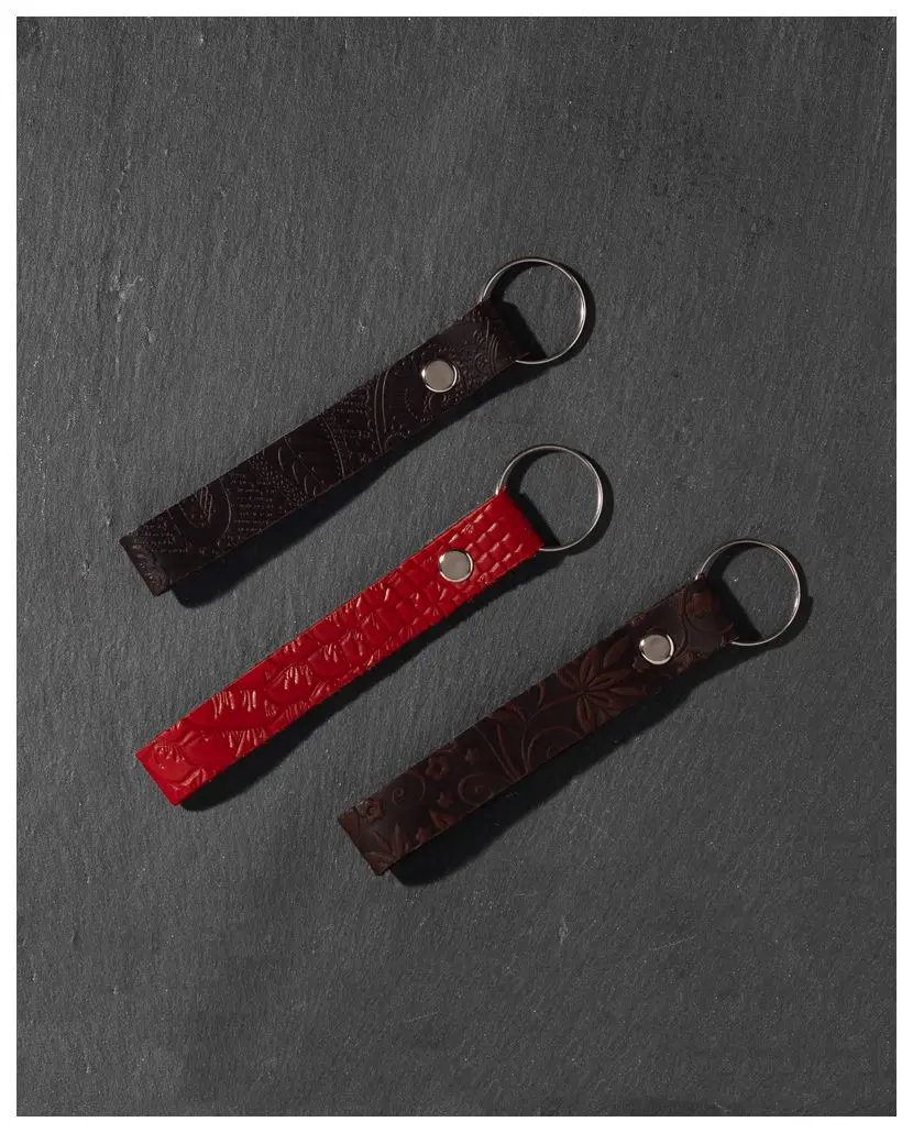 Брелоки сделаны из качественной натуральной кожи в виде петельки с блинтовым тиснением.