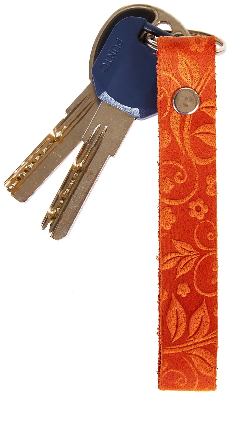 Брелок для ключей из натуральной кожи, рыжий, тиснение по коже конгрев "Флаверс"