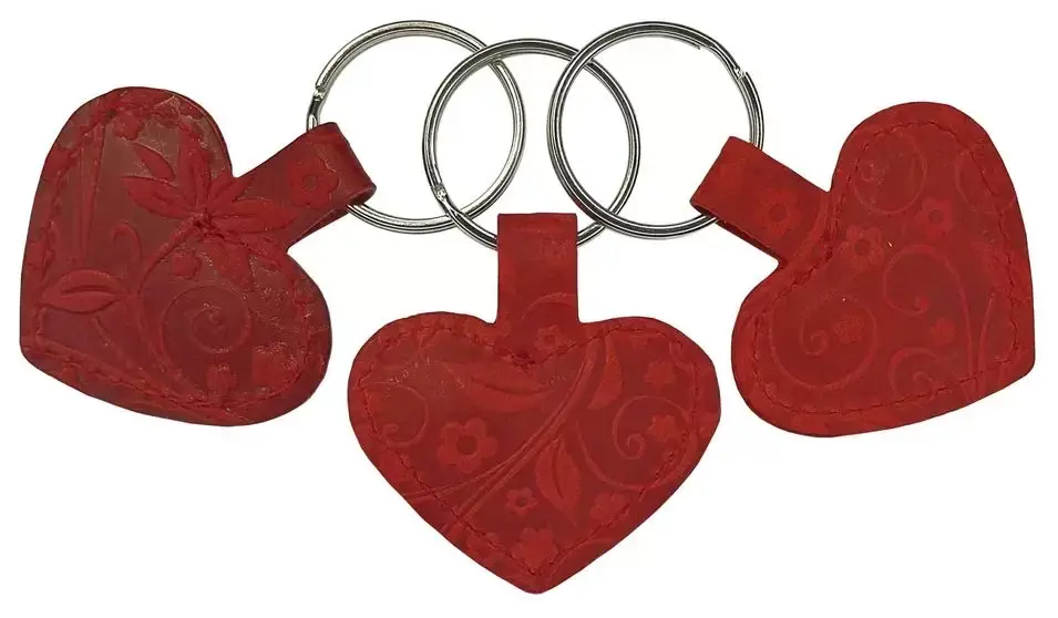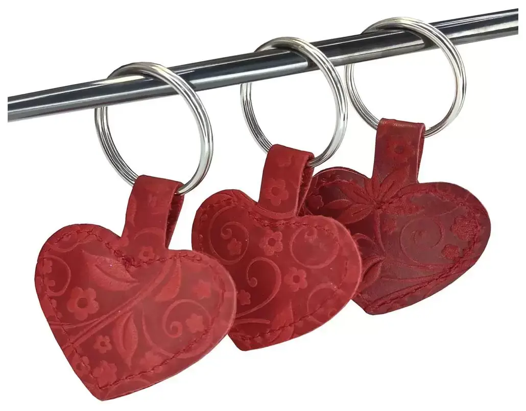 Брелок для ключей из натуральной кожи "Сердечко", красный, тиснение по коже конгрев "Флаверс"
