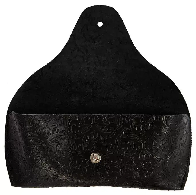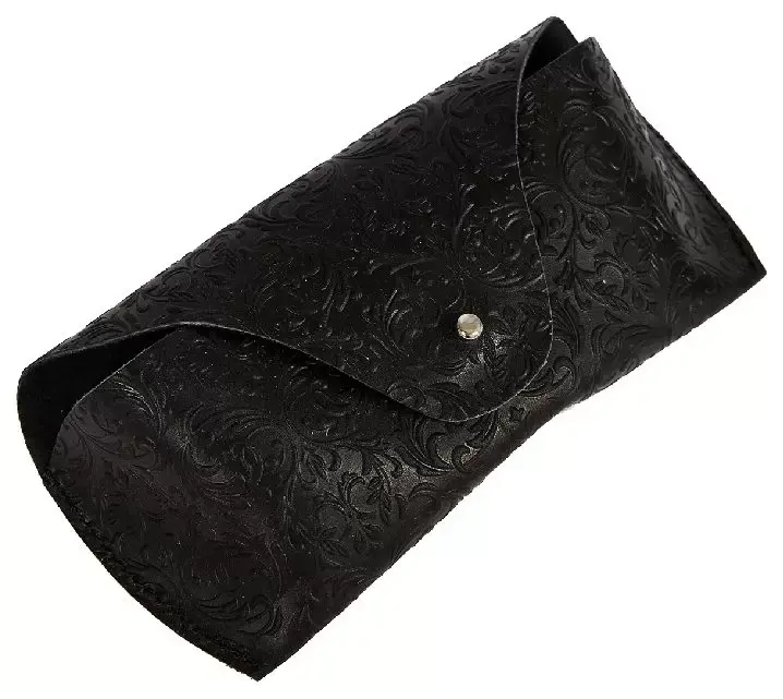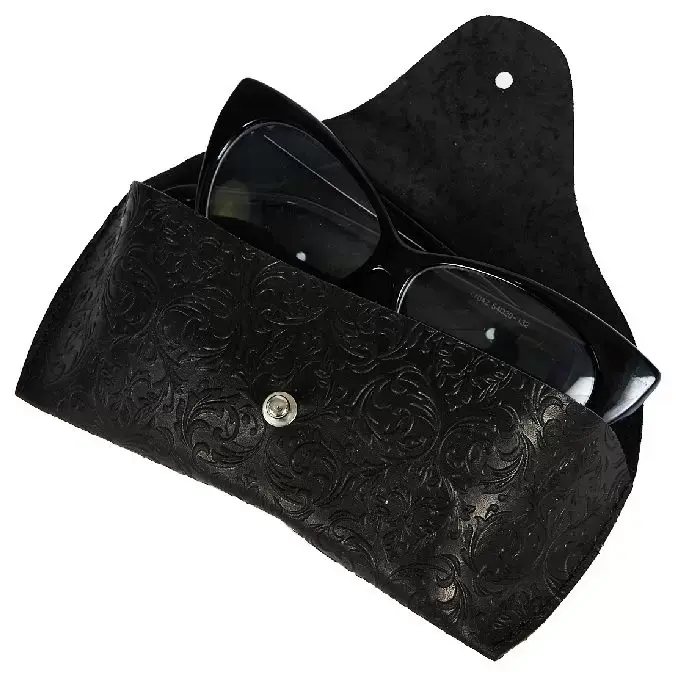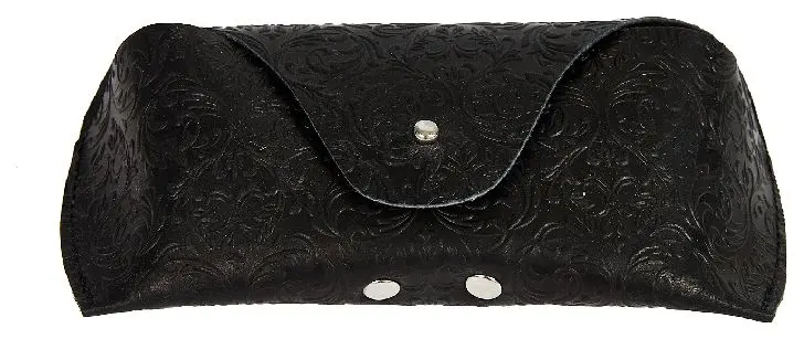 Чехол для очков из натуральной кожи 15,5x6 см, толщина 4 см, черный, тиснение по коже конгрев "Адажио"