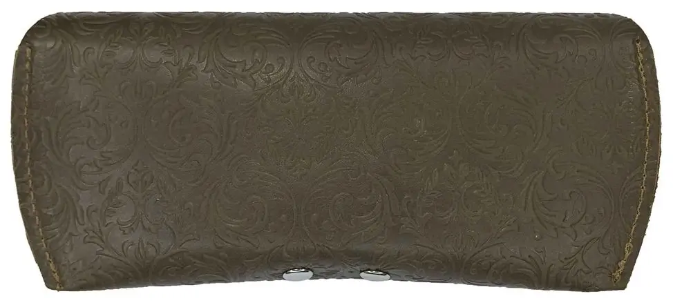 Чехол для очков из натуральной кожи 15,5x6 см, толщина 4 см, оливковый, тиснение по коже конгрев "Адажио"