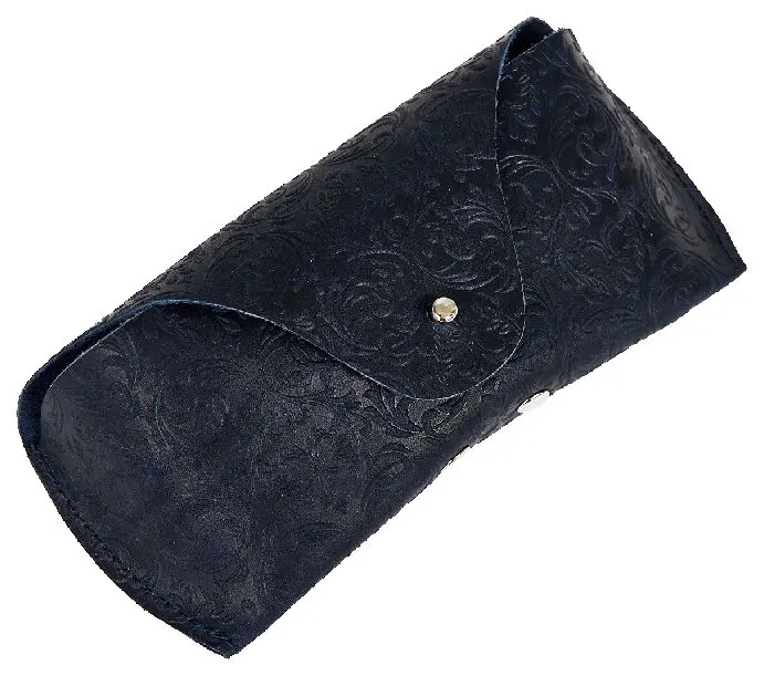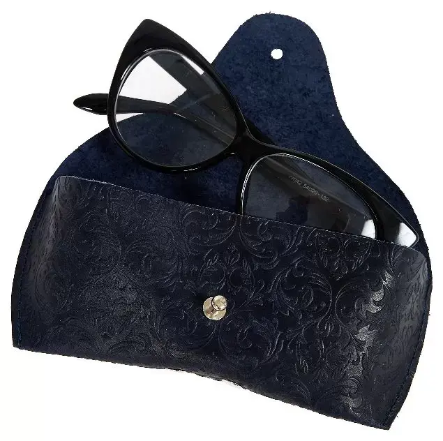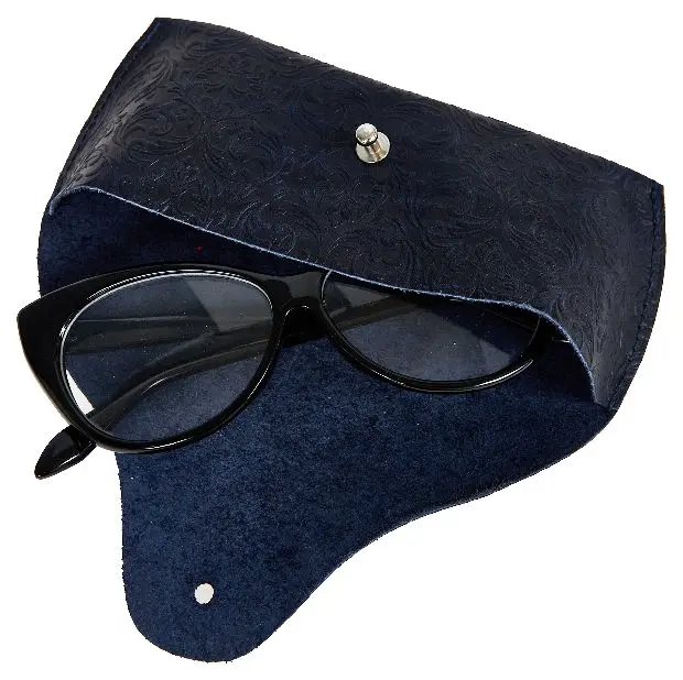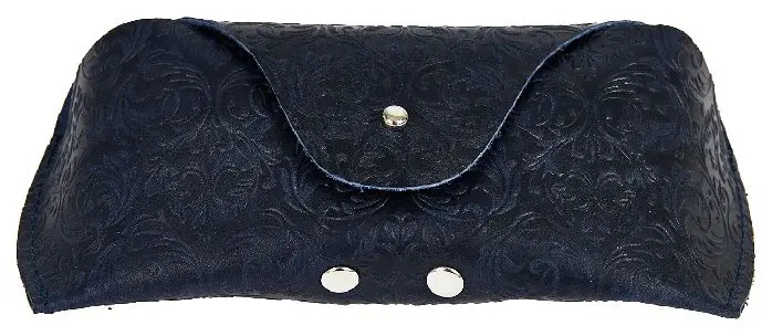 Чехол для очков из натуральной кожи 15,5x6 см, толщина 4 см, синий, тиснение по коже конгрев "Адажио"