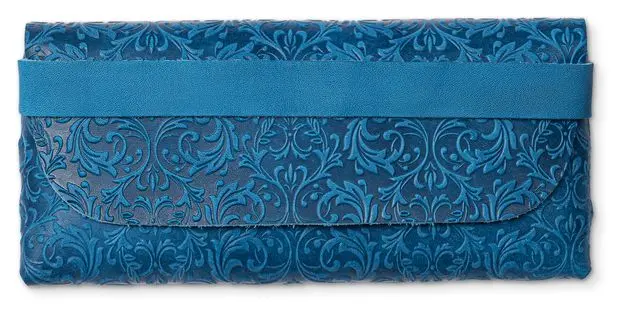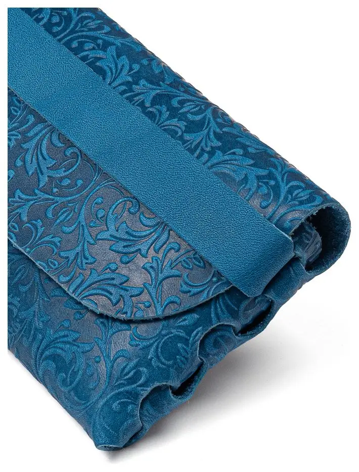 Чехол для очков Универсальный из натуральной кожи 17x8 см, толщина 2 см, голубой, тиснение по коже конгрев "Адажио"