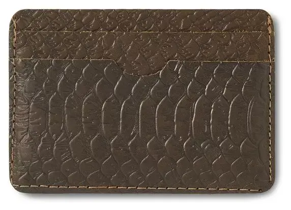 Картхолдер "Бетховен" из натуральной кожи, оливковый, пять отделений, тиснение "Питон"