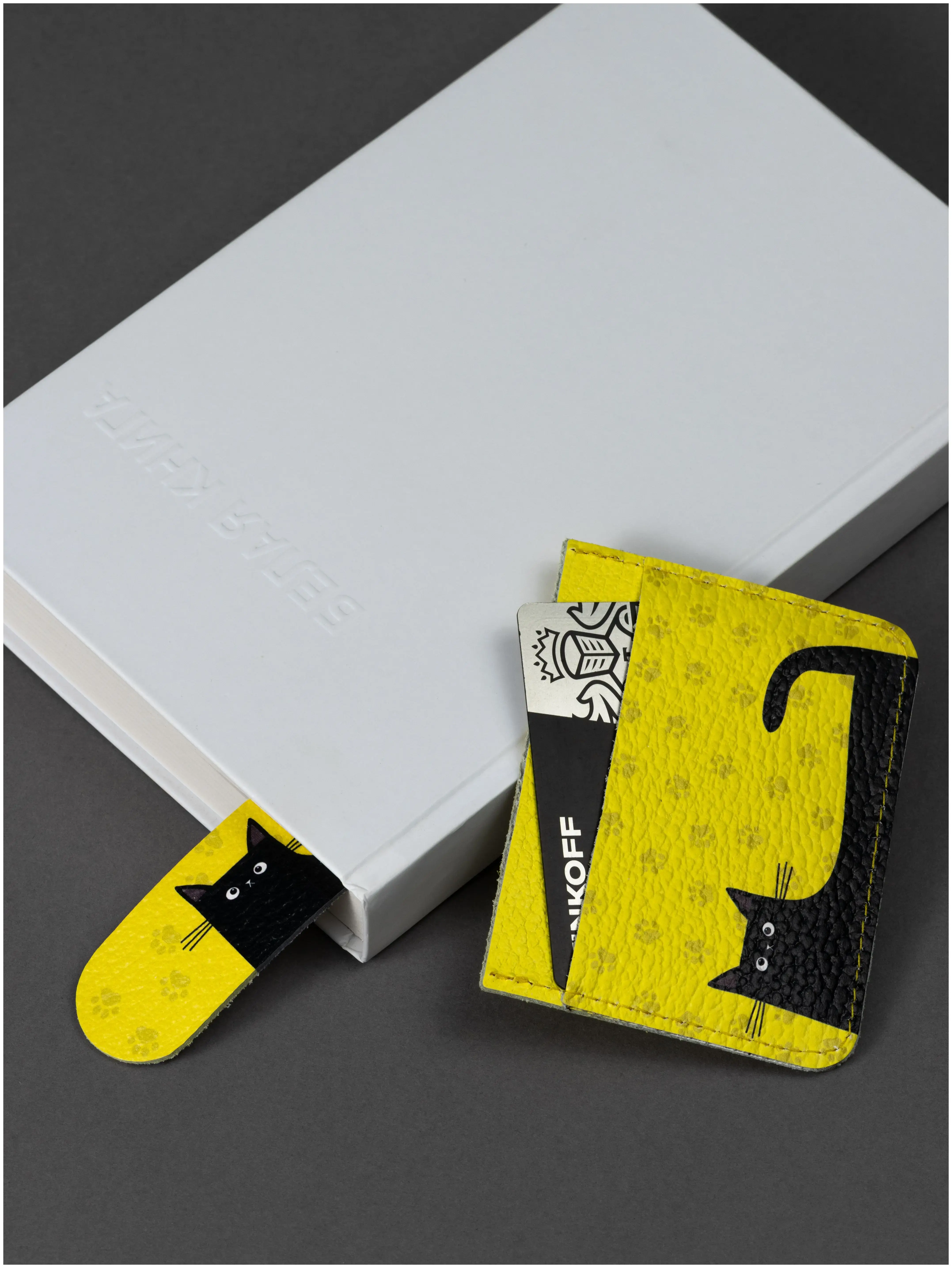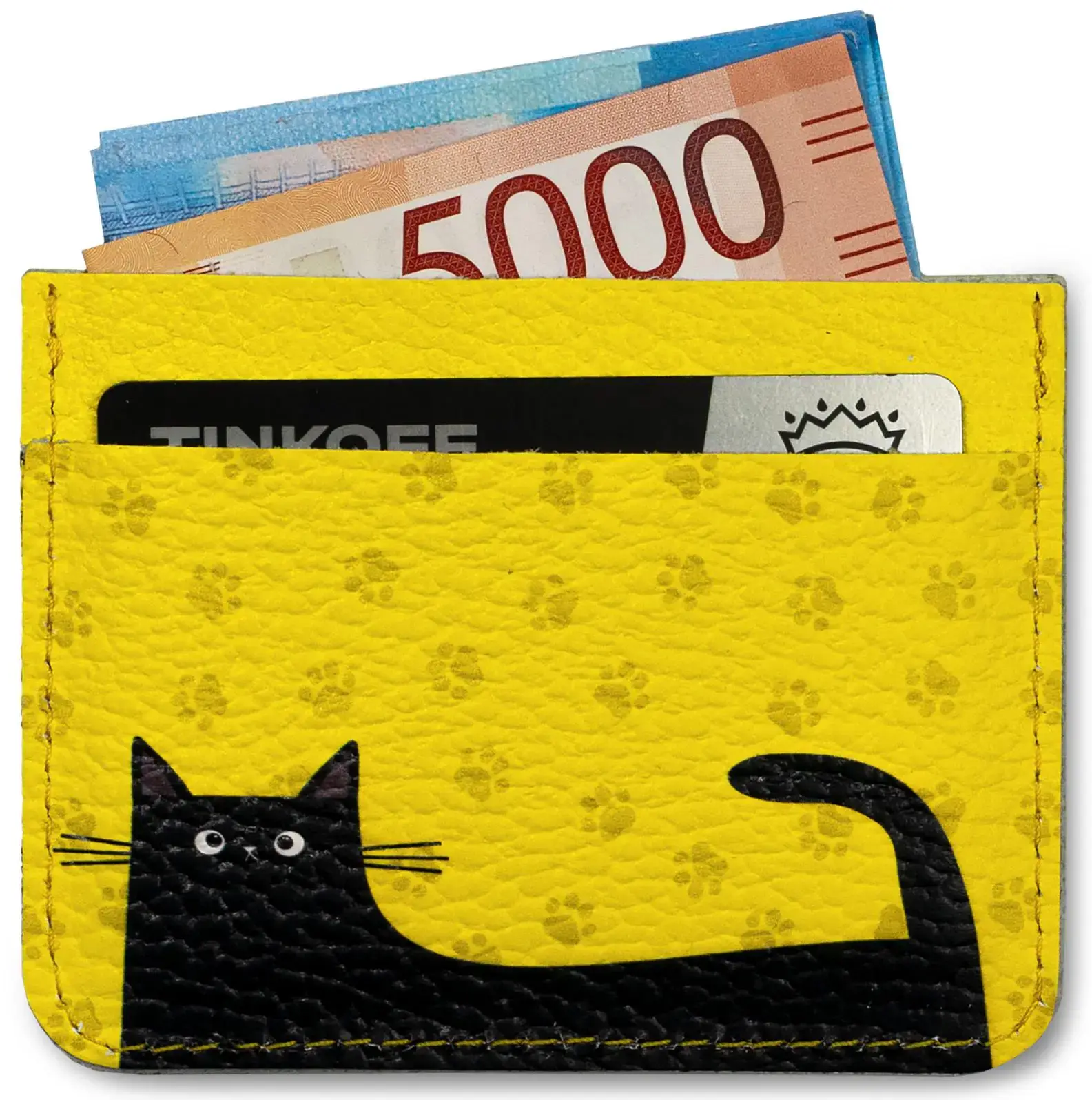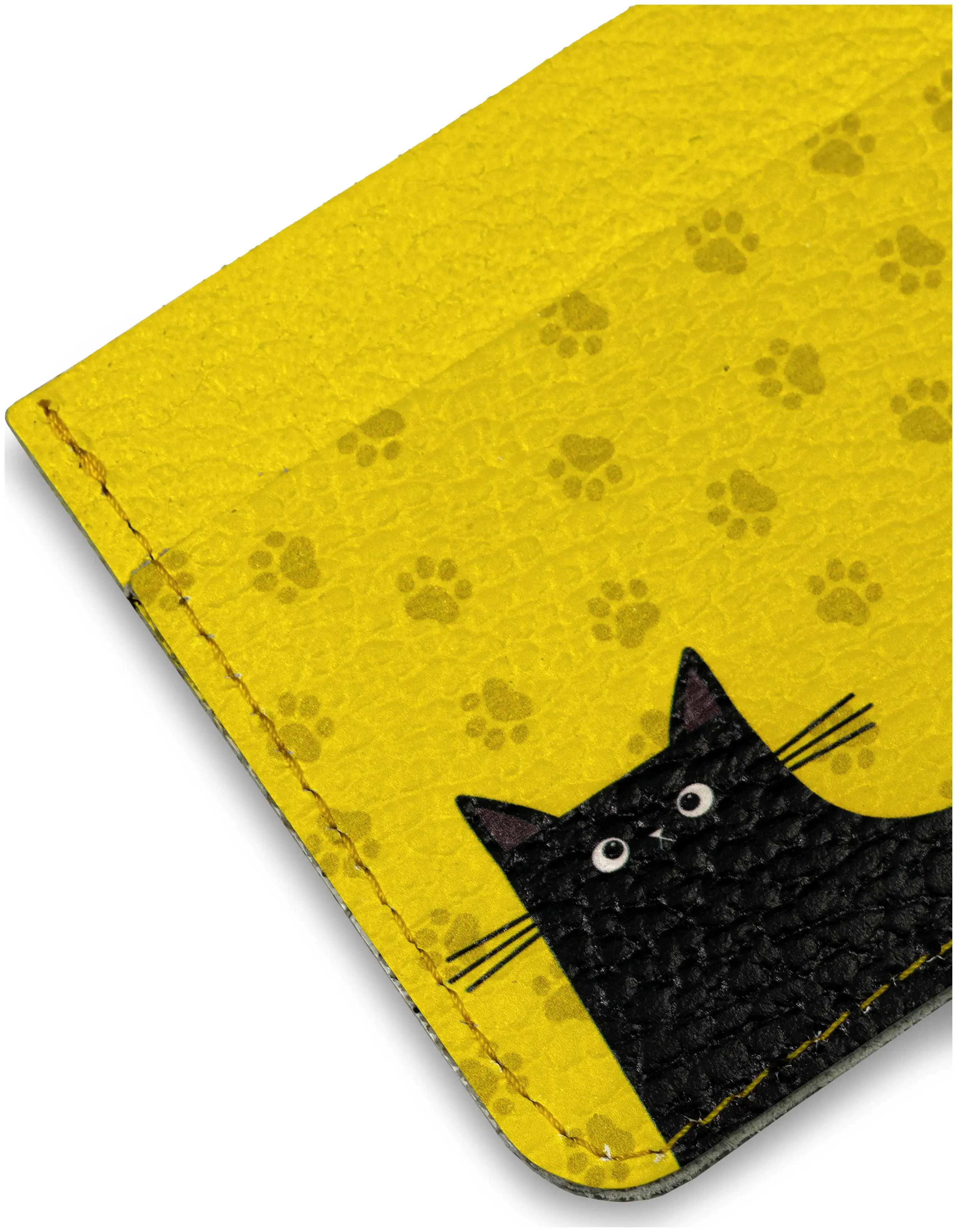Картхолдер из натуральной кожи, с цветным рисунком по коже "Черный кот"
