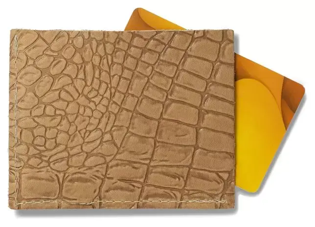 Картхолдер "Улыбка" из натуральной кожи, бежевый, тиснение "Данди"