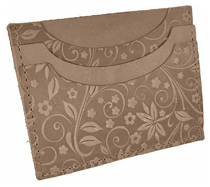 Картхолдер "Улыбка" из натуральной кожи, бежевый, тиснение "Флаверс"