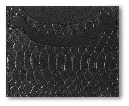 Картхолдер "Улыбка" из натуральной кожи, черный, тиснение "Питон"