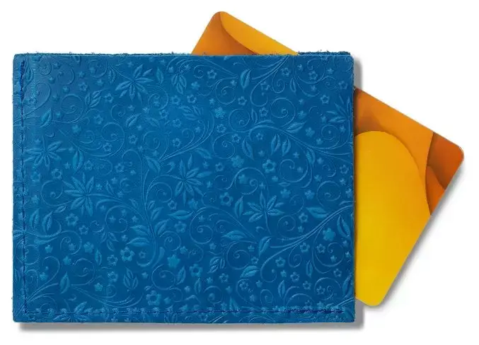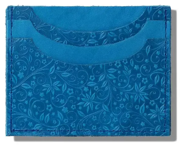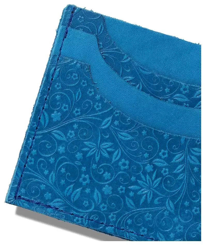 Картхолдер "Улыбка" из натуральной кожи, голубой, тиснение "Флаверс"
