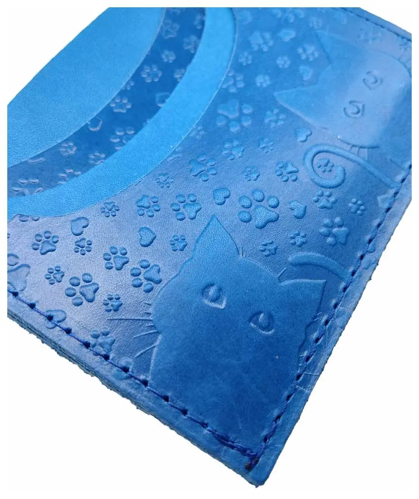 Картхолдер "Улыбка" из натуральной кожи, голубой, тиснение "Котики"