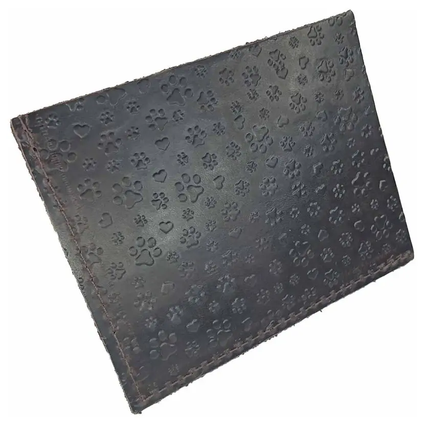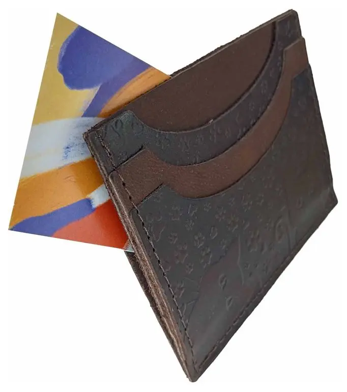 Картхолдер "Улыбка" из натуральной кожи, коричневый, тиснение "Котики"