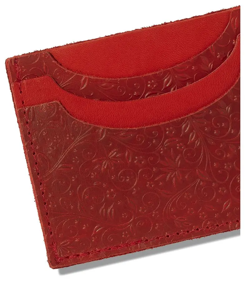 Картхолдер "Улыбка" из натуральной кожи, красный, тиснение "Флаверс"