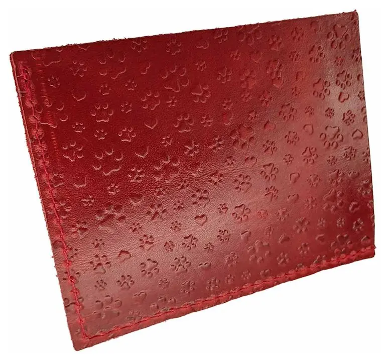 Картхолдер "Улыбка" из натуральной кожи, красный, тиснение "Котики"