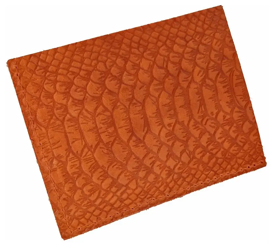 Картхолдер "Улыбка" из натуральной кожи, рыжий, тиснение "Питон"