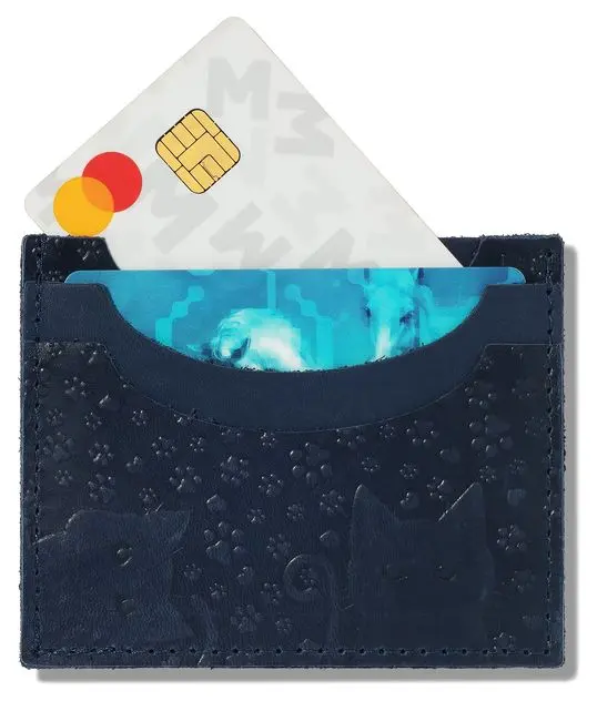 Картхолдер из натуральной кожи, с цветным рисунком по коже "Черный кот"