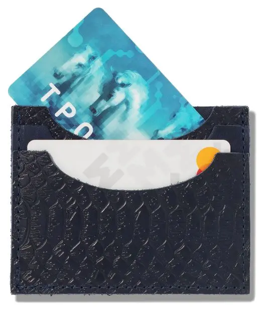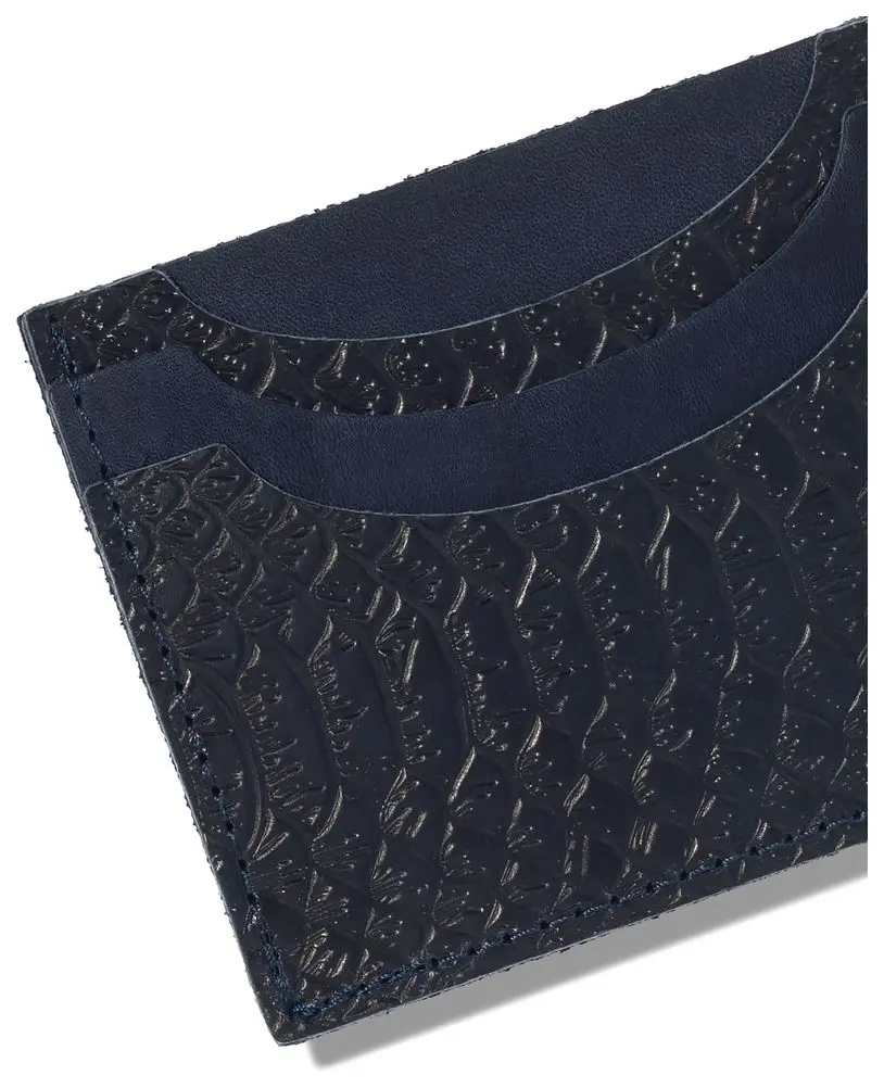 Картхолдер "Улыбка" из натуральной кожи, синий, тиснение "Питон"