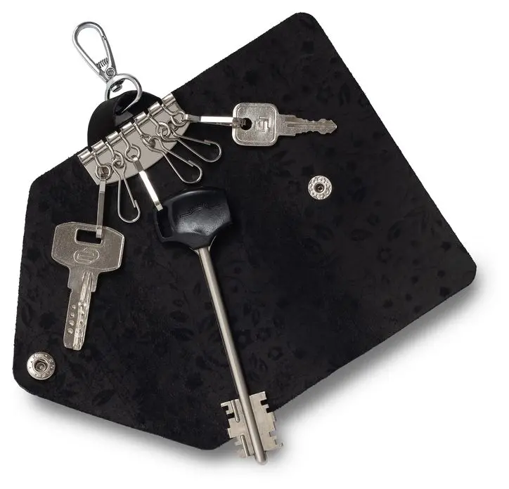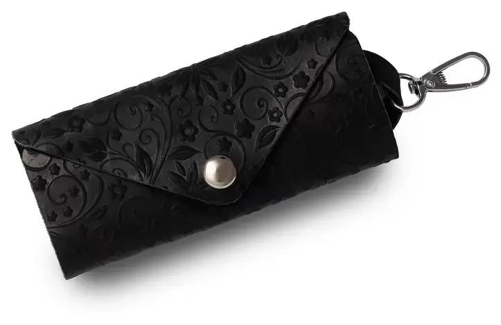 Ключница из натуральной кожи на кнопке, черная, тиснение "Флаверс"