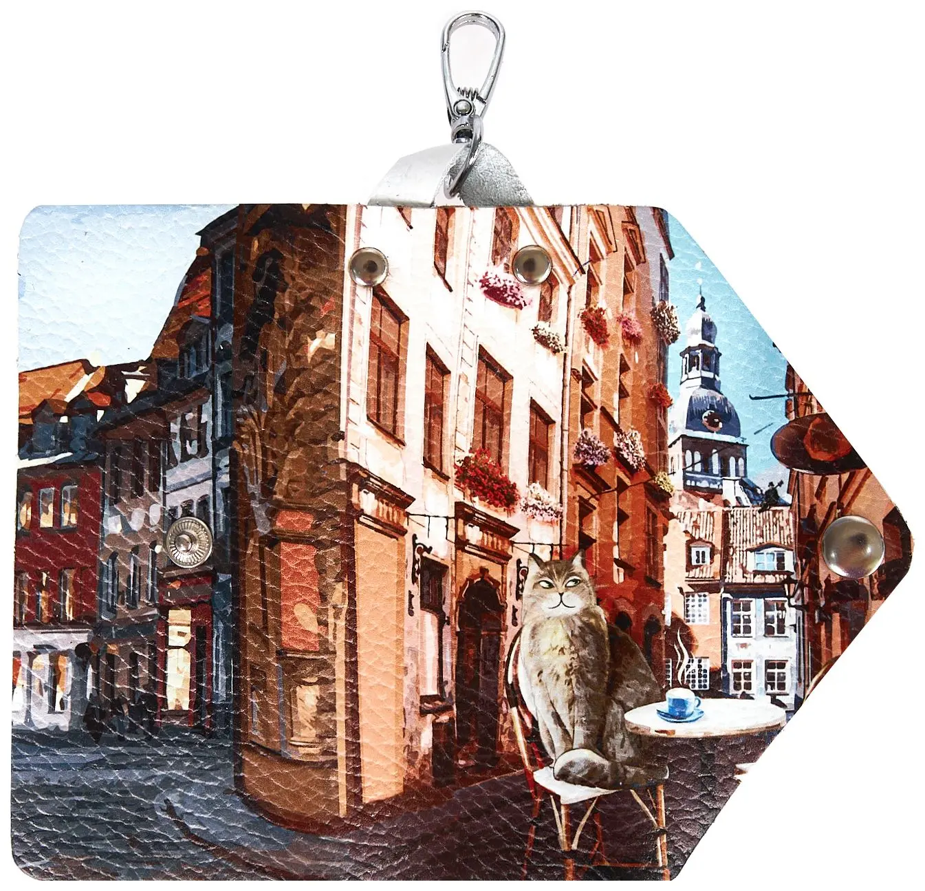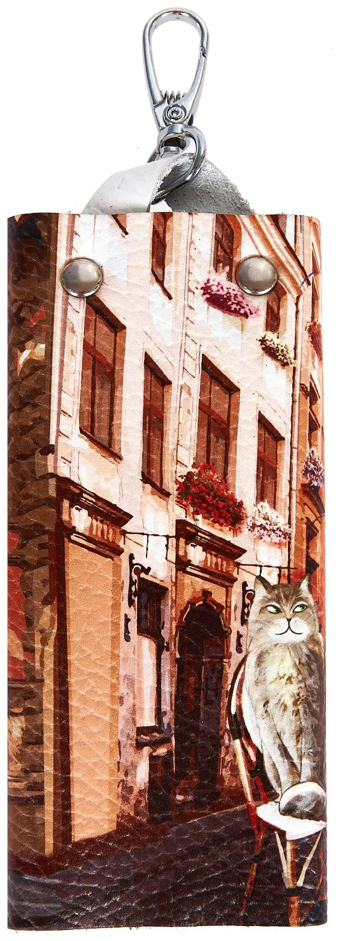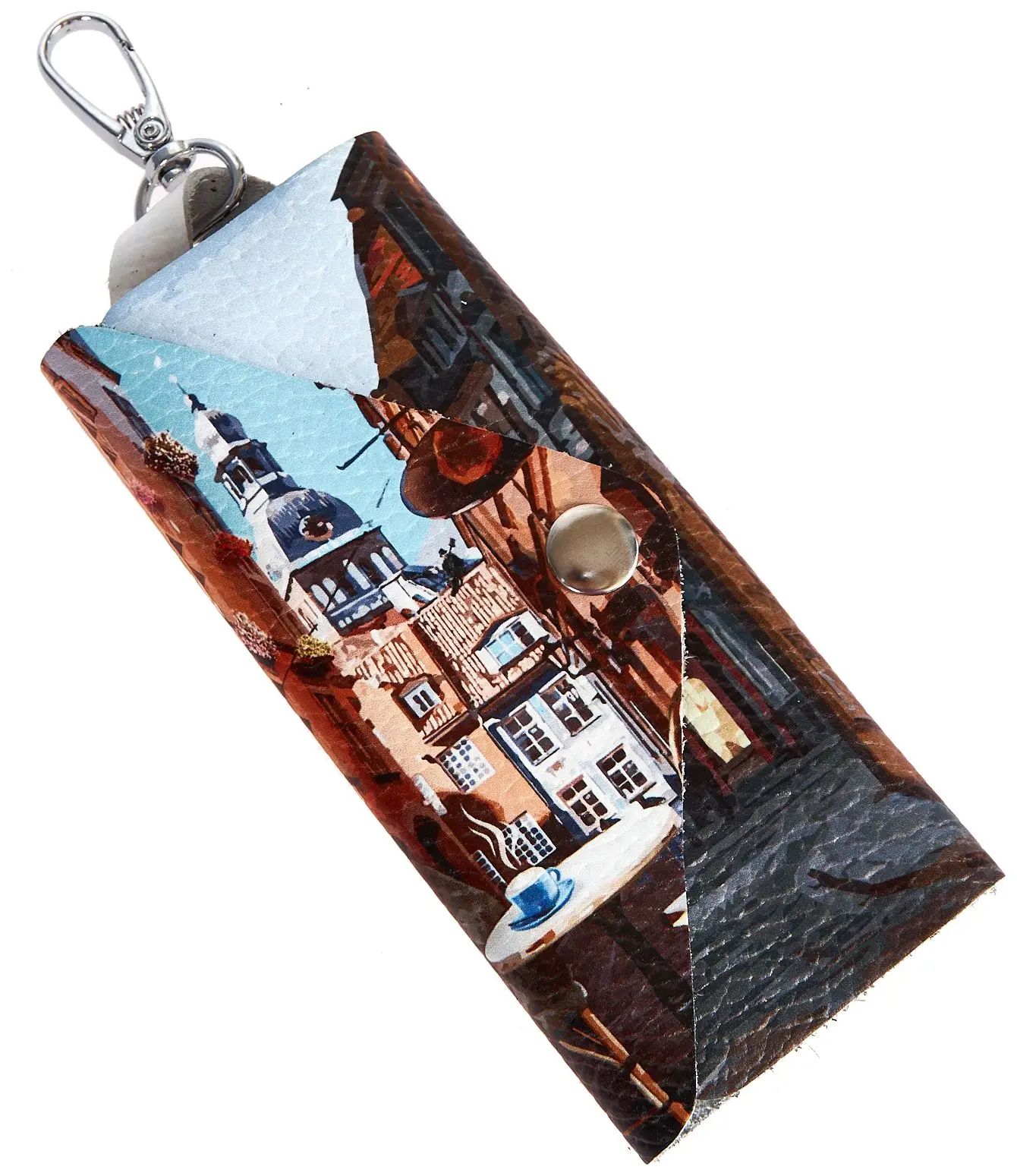 Ключница из натуральной кожи на кнопке, цветной рисунок по коже "Домский собор"