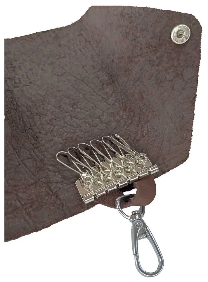Ключница из натуральной кожи на кнопке, коричневая, тиснение "Данди"
