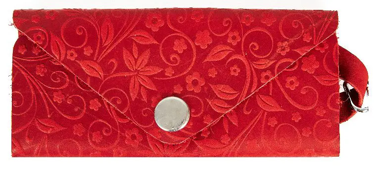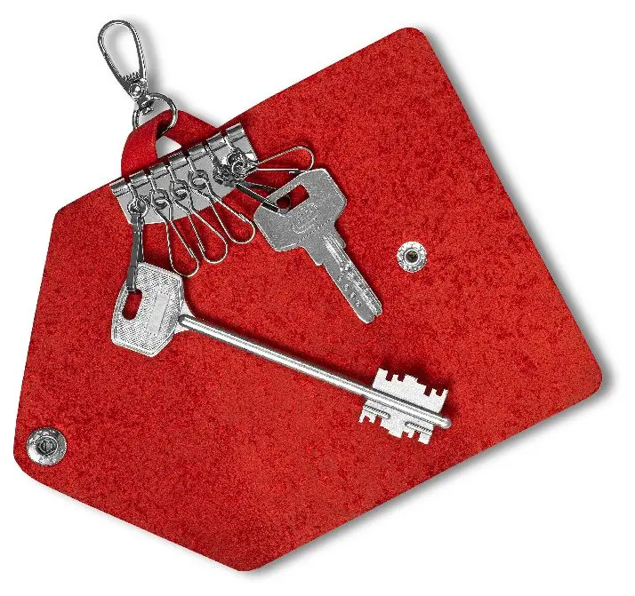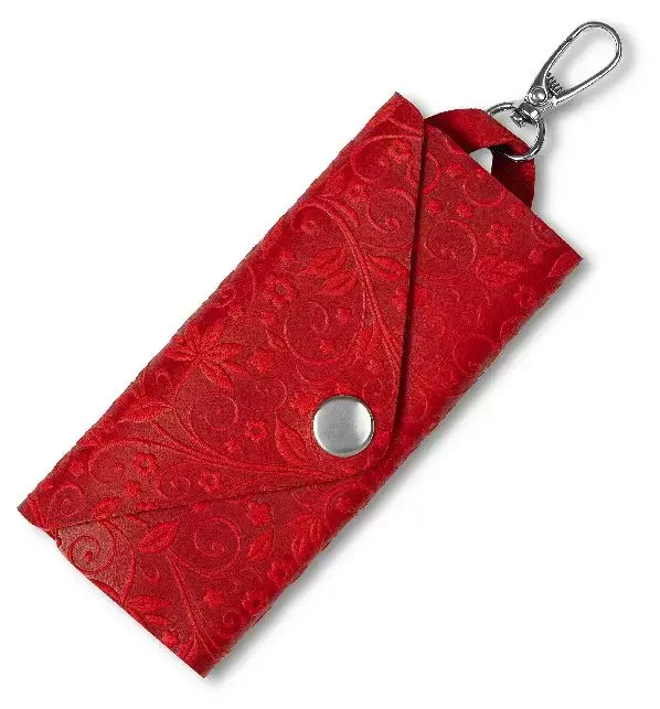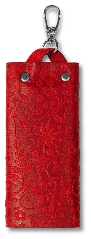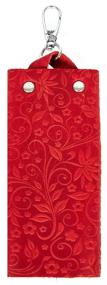 Ключница из натуральной кожи на кнопке, красная, тиснение "Флаверс"