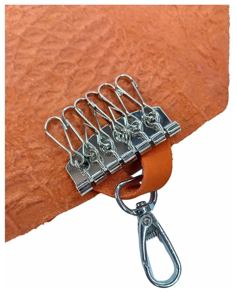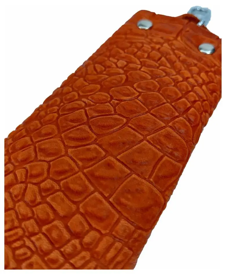 Ключница из натуральной кожи на кнопке, рыжая, тиснение "Данди"