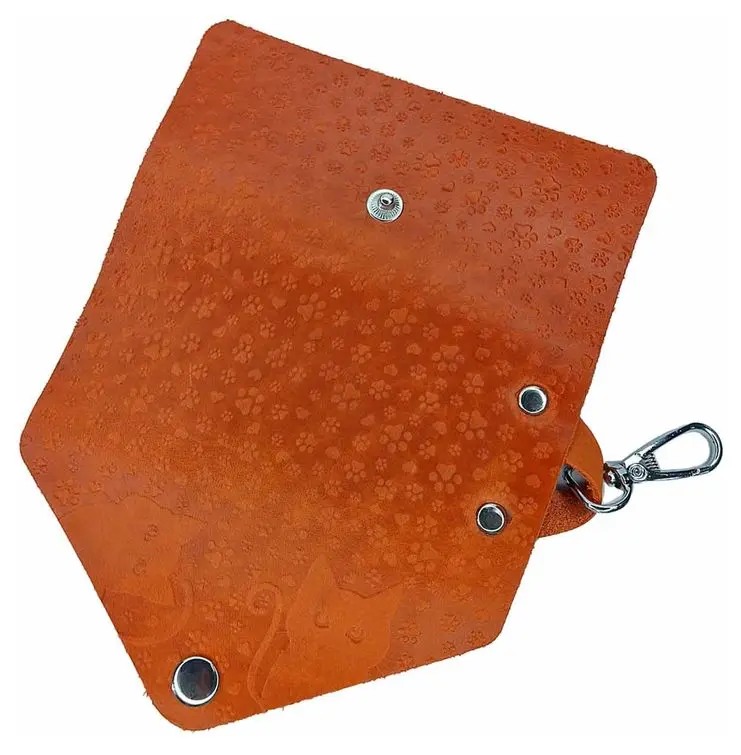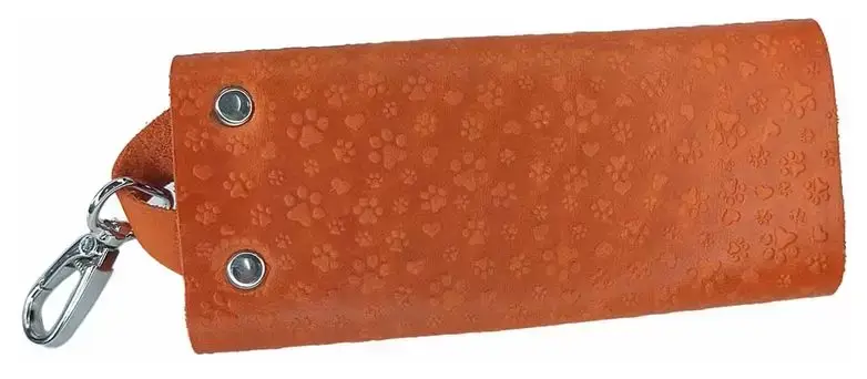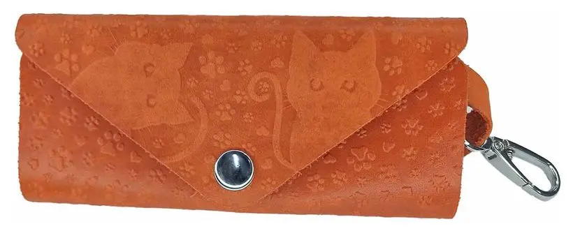 Ключница из натуральной кожи на кнопке, рыжая, тиснение "Котики"