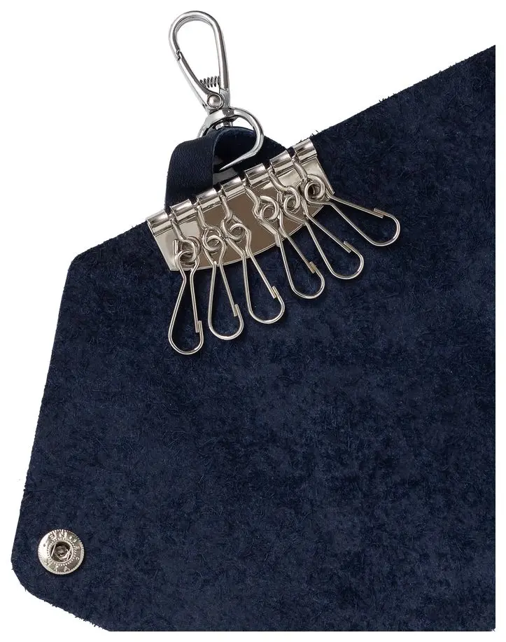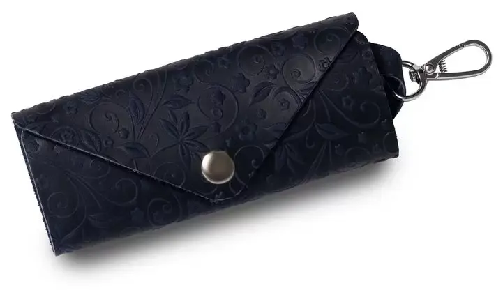 Ключница из натуральной кожи на кнопке, синяя, тиснение "Флаверс"