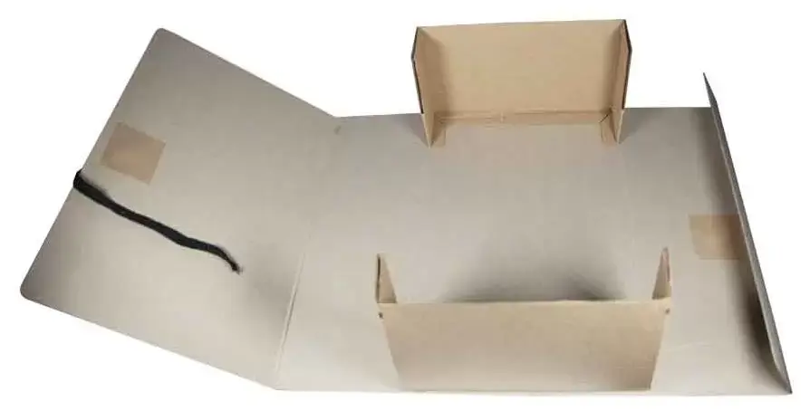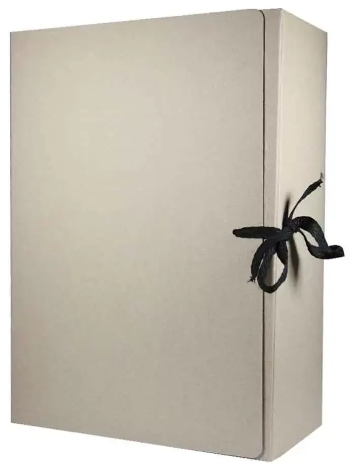 Складной короб "Отчет-архив" изготовлен из переплетного картона. Внутренние стойки выполнены из микрогофрокартона. В закрытом виде фиксируется с помощью двух хлопчатобумажных завязок. Ширина корешка - 120 мм. Внешние размеры 220х120х320 мм.