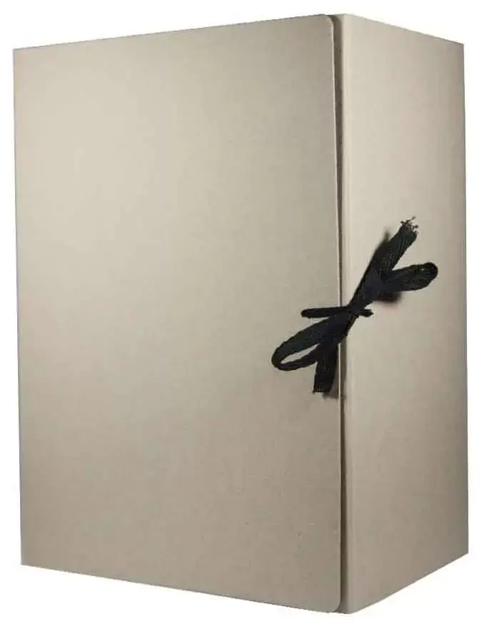 Складной короб "Отчет-архив" изготовлен из переплетного картона. Внутренние стойки выполнены из микрогофрокартона. В закрытом виде фиксируется с помощью двух хлопчатобумажных завязок. Ширина корешка - 150 мм. Внешние размеры 220х150х320 мм.