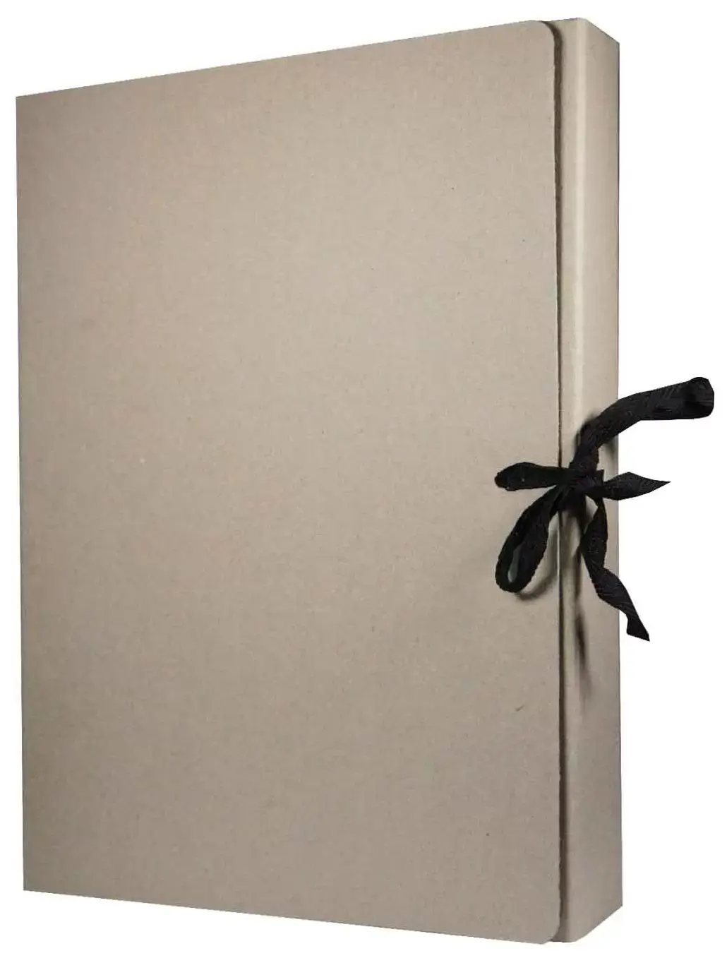 Складной короб "Отчет-архив" изготовлен из переплетного картона. Внутренние стойки выполнены из микрогофрокартона. В закрытом виде фиксируется с помощью двух хлопчатобумажных завязок. Ширина корешка - 50 мм. Внешние размеры 220х50х320 мм.