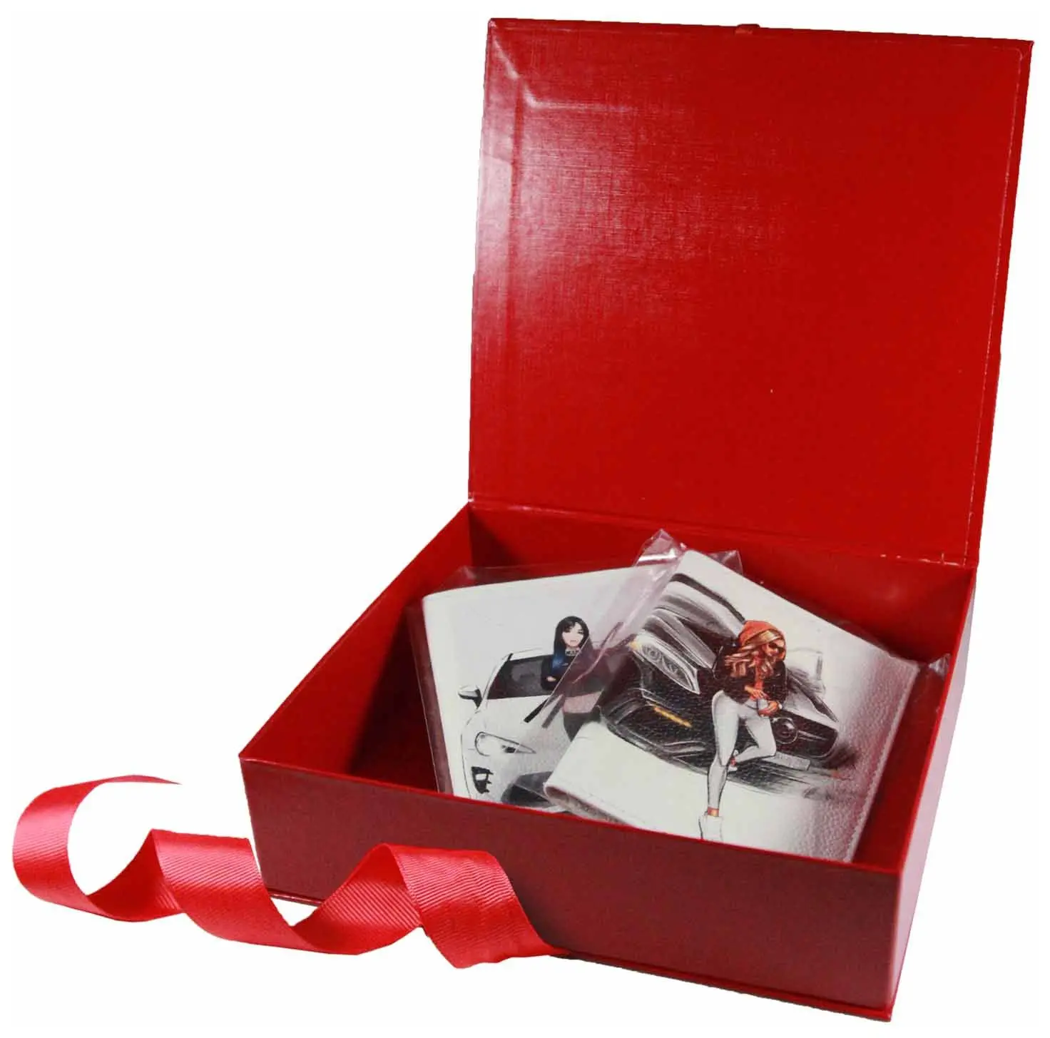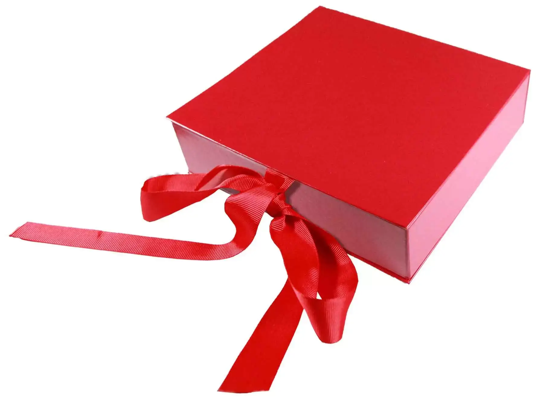 Коробка для подарков представительского уровня. Качественная и красивая. Выполнена из переплетного картона, кашированного бумвинилом красного цвета и дополнена атласной лентой в цвет коробки. Размер коробки 200*180*50 мм