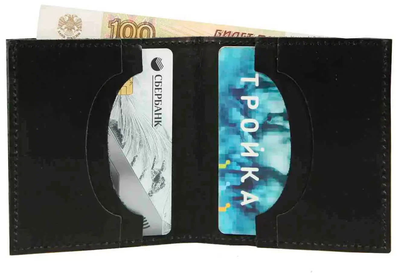 Кошелек 85*95 мм из натуральной кожи "Снуппи" черный