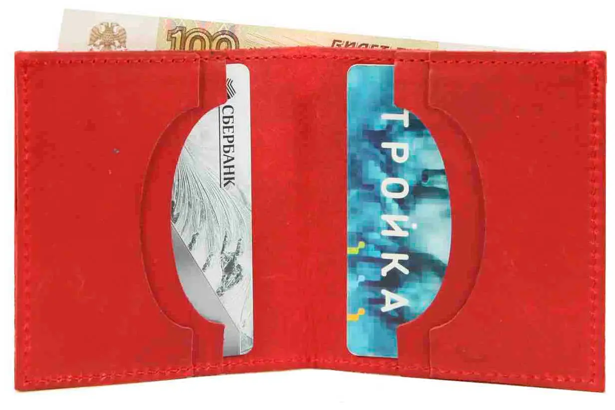 Кошелек 85*95 мм из натуральной кожи "Снуппи" красный