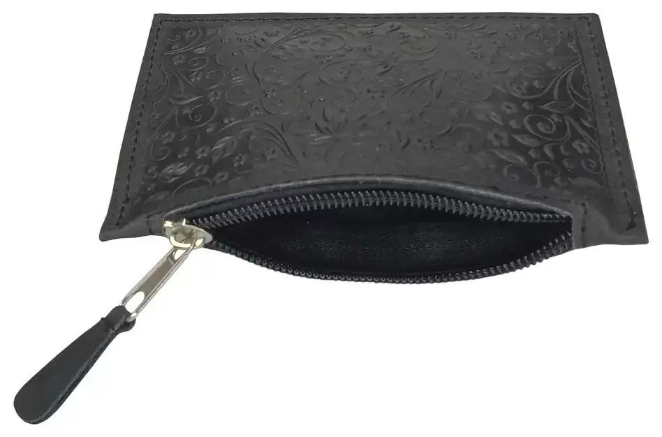Красивый и модный кошелек для монет выполнен из натуральной кожи с блинтовым тиснением. Денежный мешочек имеет застежку-молнию. Мешочек для монет имеет небольшие размеры, что позволяет поместить его в карман или отделение сумки. Кошелек для мелочи несложно захватить с собой.