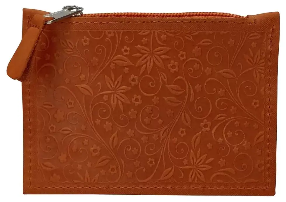 Кошелек для монет из натуральной кожи 12x8 см, рыжий, тиснение по коже конгрев "Флаверс"
